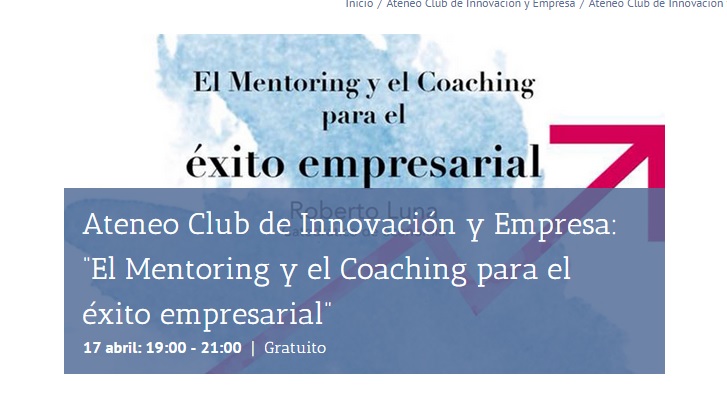 El próximo martes 17 de abril a las 19:00 horas, llega una nueva conferencia del Ateneo Club de Innovación y Empresa bajo el título “El Mentoring y el Coaching para el éxito empresarial”. La ponencia será impartida por el Dr. D. Roberto Luna-Arocas, licenciado en Psicología, Doctor en Psicología Social, Máster en Marketing y Catedrático de Dirección de Empresas de la Facultad de Economía de la Universidad de Valencia. Experto en Gestión del Talento y RRHH y Director del Master en Gestión del Talento (7ª Edición). La conferencia está organizada por el Ateneo Club de Innovacion y Empresa y cuenta con el apoyo del principal patrocinador, Caixa Popular.