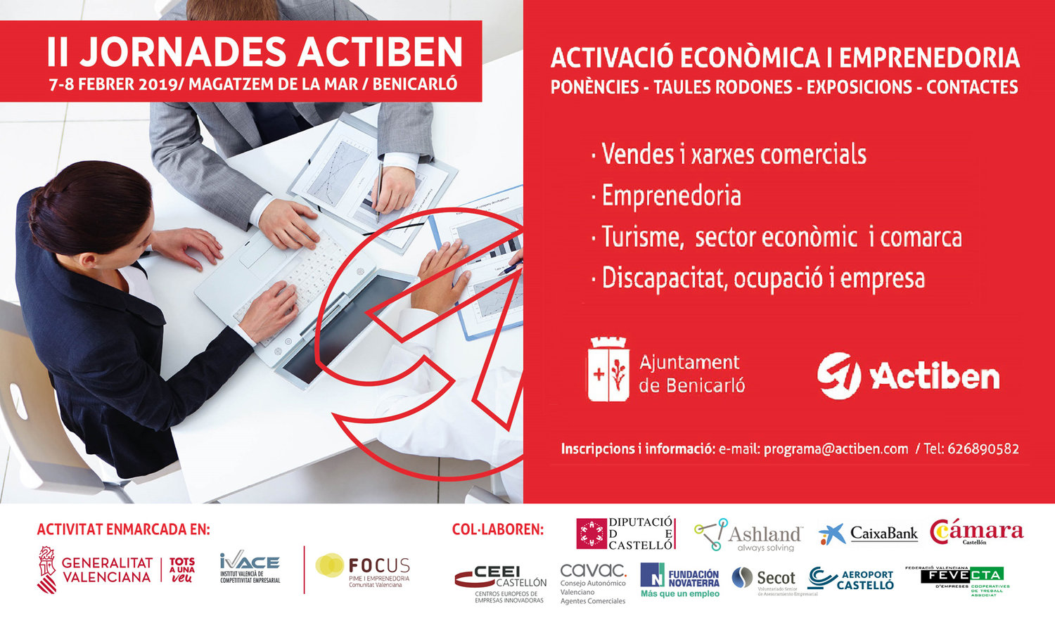 El Ayuntamiento de Benicarló, en colaboración con agentes de emprendimiento y la innovación de la provincia de Castellón, organiza durante los días 7 y 8 de febrero las "II JORNADES ACTIBEN".