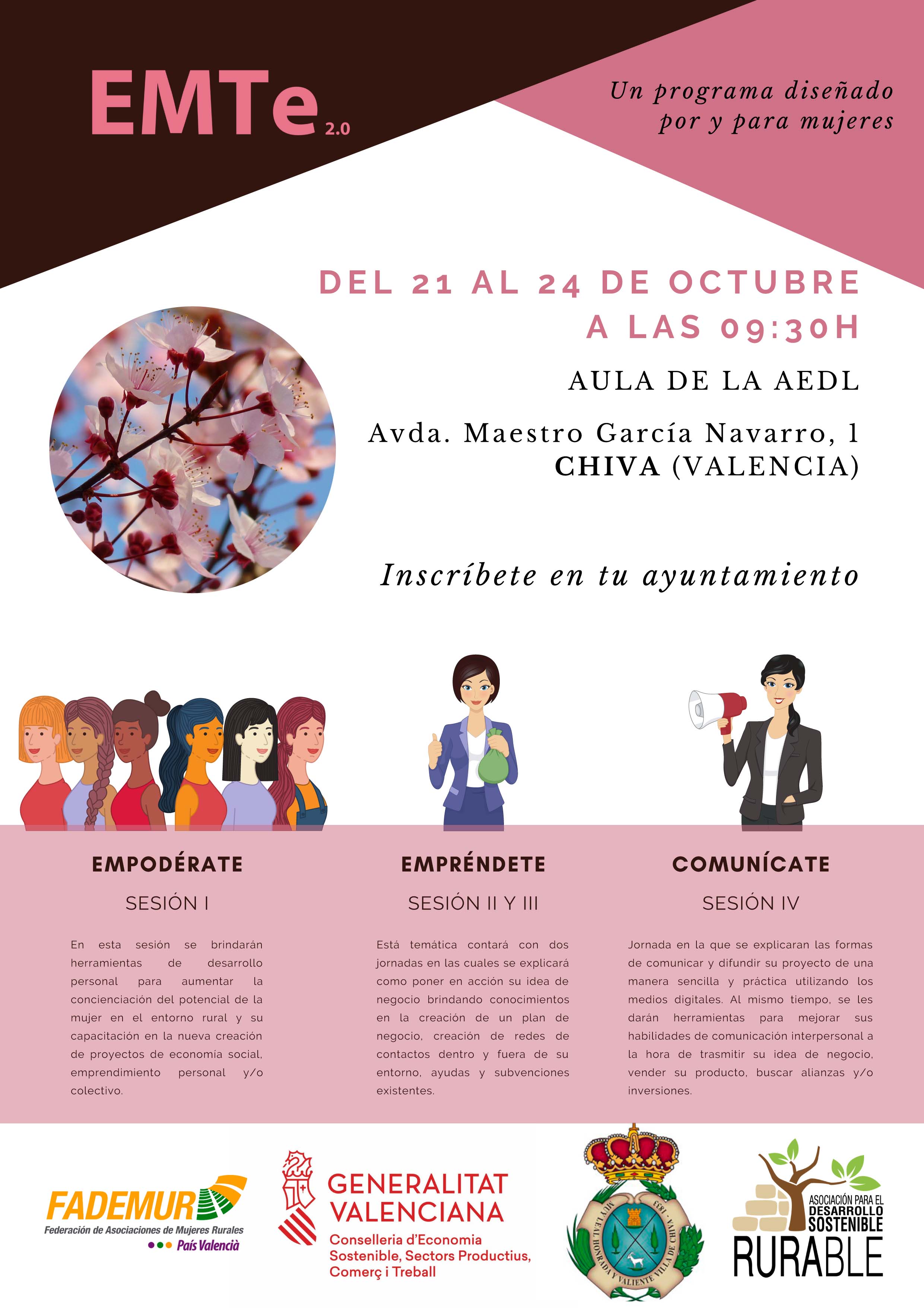 El programa EMTe cuyo nombre completo es ‘Tejiendo redes entre mujeres en medio rural para empoderarte, emprender y conectar’, va dirigido a mujeres rurales de toda la Comunidad Valenciana