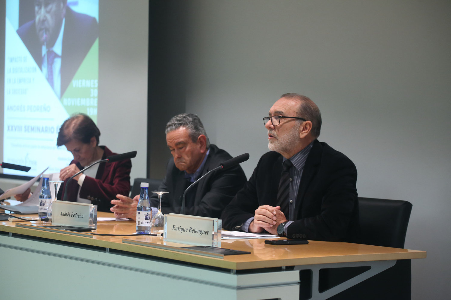 El catedrático de Economía Aplicada y ex rector de la Universidad de Alicante, Andrés Pedreño, ha explicado “El impacto de la digitalización en la empresa y la sociedad” en el marco del XXVIII Seminario Étnor. El acto ha sido inaugurado por el presidente de la Fundación Étnor, Enrique Belenguer, y la catedrática de Ética de la Universitat de València y directora académica de la Fundación Étnor, Adela Cortina.  Esta jornada se enmarca en el XXVIII Seminario Étnor, Desafíos Éticos para la Empresa en un Mundo Digital.