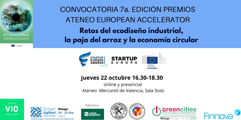Un año más, y ya es el séptimo consecutivo, el 'Ateneo Club de Innovación y Empresa', gracias a la colaboración con la 'Fundación Finnova', el patrocinio de “Caixa Popular” y con el soporte mediático de la Unión Europea y de Valencia Activa, presenta el premio 'Ateneo StartUp Europe Accelerator 2020, que permitirá a un joven emprendedor o emprendedora impulsar su empresa en el corazón de Europa, y acceder a oportunidades de financiación, networking, movilidad, comunicación internacional, y ¡mucho más!