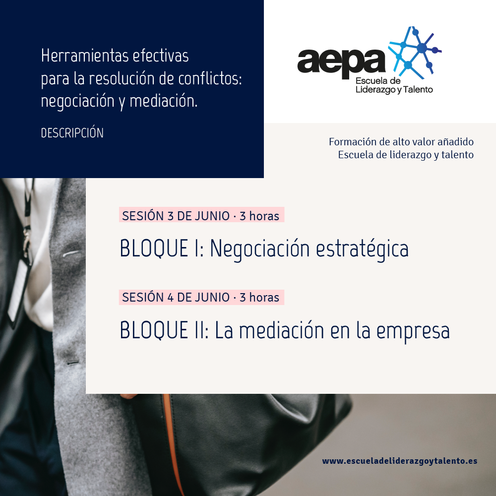 A través del taller conoceremos qué tipo de conflictos son los más frecuentes en el ámbito empresarial y profesional. Identificaremos los distintos métodos de resolución y cuáles son los criterios para elegir el más apropiado para cada tipo de conflictos y para cada tipo de empresa o profesional autónoma según las circunstancias del caso y nos centraremos en conocer la Mediación, como método ágil y eficiente de resolución de conflictos en el ámbito de la empresa y para qué nos puede interesar acudir a los profesionales de la Mediación, explicado bajo el paraguas de los principios de este método de resolución de conflictos.