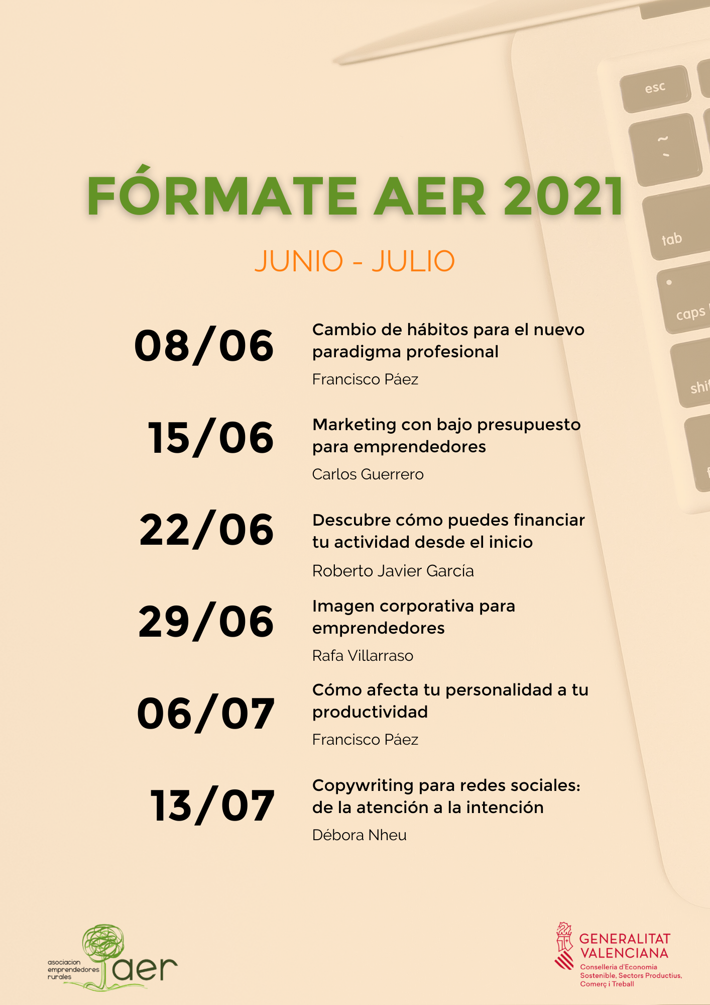El Programa «Fórmate AER» es una de las líneas estratégicas de actuación de la Asociación de Emprendedores Rurales para 2021.