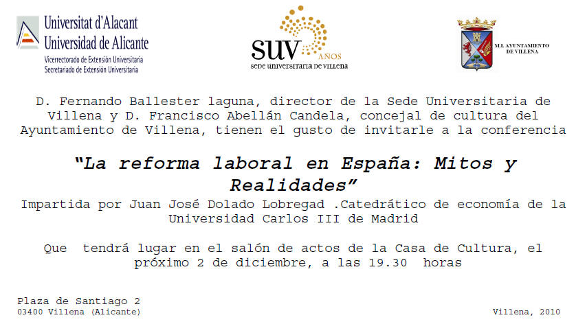 Invitación a la conferencia: "La Reforma Laboral en España. Mitos y leyendas".