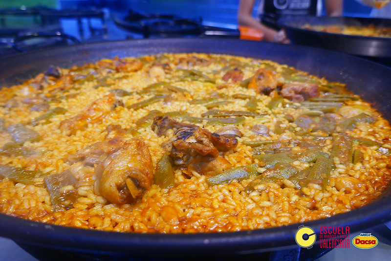 La Paella Valenciana con conejo y pollo es la más típica. Antiguamente se solía cocinar a leña en una paella (mejor si era leña de naranjo). La paella era el plato central y la excusa perfecta para quedar con la familia los domingos. A día de hoy, la tradición ha pasado de generación en generación y es muy común.