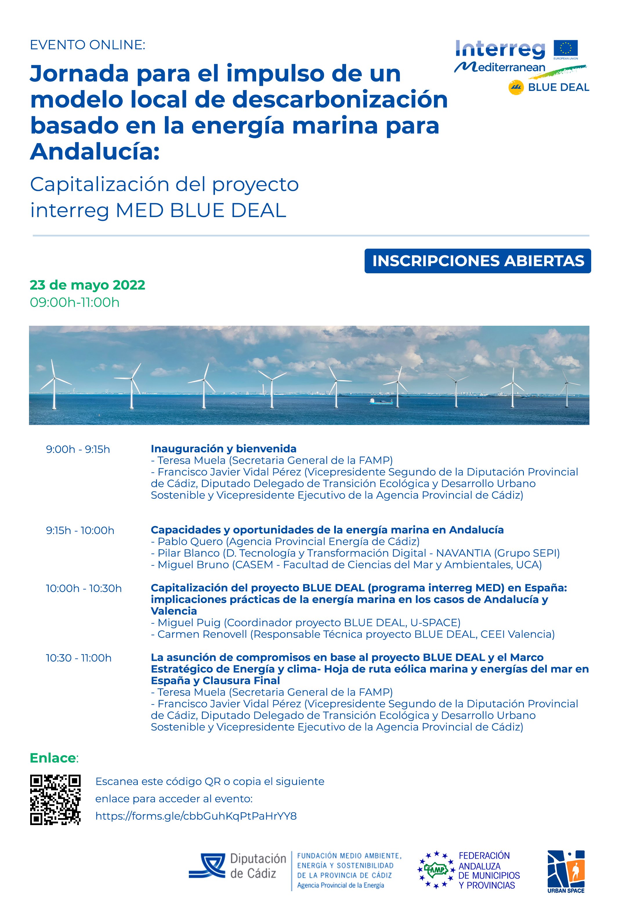 Jornada para el impulso de un modelo local de descarbonización basado en la energía marina para Andalucía.Capitalización del proyecto interreg MED BLUE DEAL. El próximo 23 de mayo de 2022. Evento online