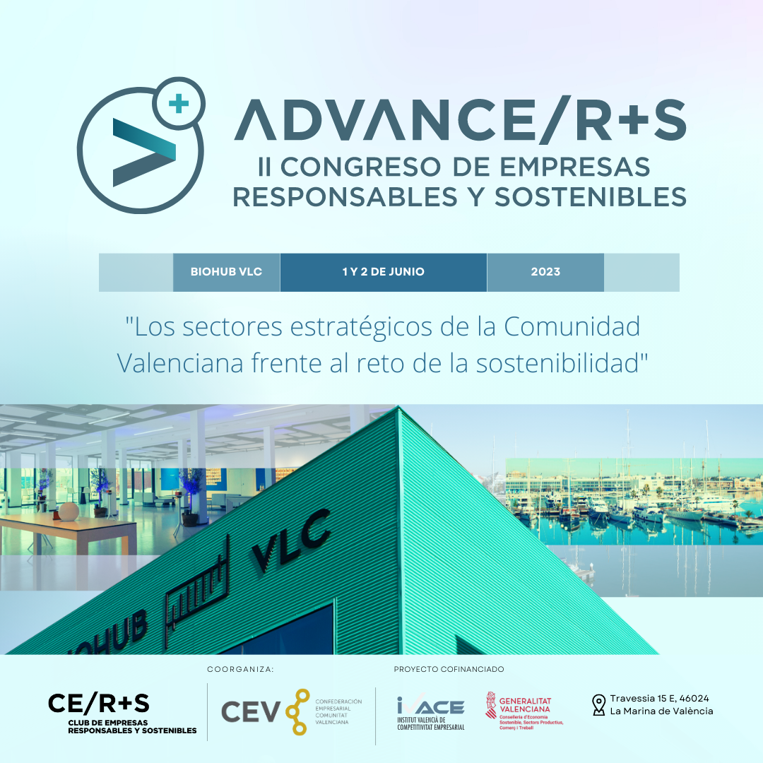 II Congreso ADVANCE/R+S "Los Sectores Estratégicos de la Comunidad Valenciana frente al reto de la sostenibilidad'' tendrá como enfoque analizar retos y oportunidades de los sectores estratégicos de la Comunidad Valenciana en clave de sostenibilidad, como también conocer los requisitos y exigencias que las compañías están solicitando a las empresas proveedoras en su cadena de actividades, las transformaciones de los sectores y otras temáticas de interés.