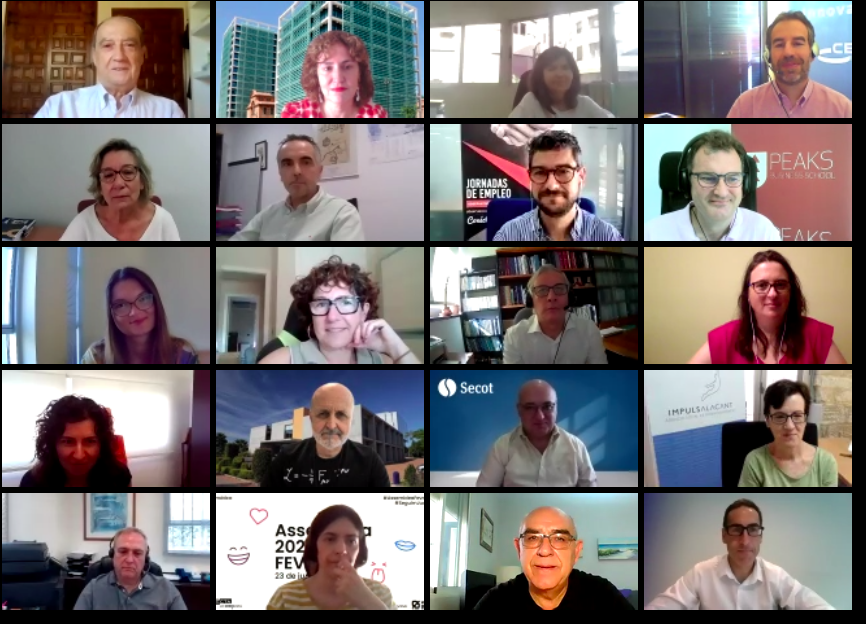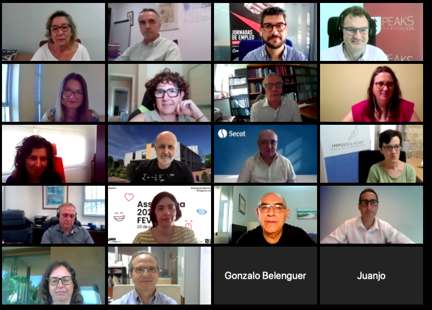 Al encuento han asistido casi medio centenar de agentes: Pilar Guillén de AESAL-CV; Sonia Rujas de la Asociación de Empresarias, Profesionales y Directivas de Alicante (AEPA), Amparo Salomé Reíllo de AVAESEN; Joan Ramón Sanchis de la Càtedra d'Economia del Bé Comú. Universitat de València; Sonia Gil Tena de CEDES Albocàsser Diputación de Castellón; Pep Rubio del Centro de Empleo de la Universidad de Alicante; Rubén García de CEV Alicante; Pilar Gutiérrez de la Confederación Empresarial Comunitat Valenciana; Ricardo Gordo del Consejo de Cámaras de Comercio de la CV; Leonor Bailén de CONVEGA; Ana Rivera de CREAMA; Elena Esteve y Alejandra Gimeno de la Diputación de Castellón; Mila Sycheva de Distrito Digital Comunitat Valenciana; Andrés Alcaina y Vanessa Badenas de DIVALTERRA; Francisco Ronda de FECAP; Ángela Pita de FEVECTA Castellón; Paloma Tarazona de FEVECTA; Juan Antonio Bertolín de la Fundació General UJI - Espaitec Parc Cientific i Tecnològic; Rafael Lafont de FUNDEUN; Encarnación Pérez de la Fundación Parque Científico de Alicante; Berta Clausell de la Fundación Universitat Jaume I - Empresa; Ricard Calvo de GRIDET (Grup d'Investigació en Desenvolupament Territorial de la Universitat de València); Mercedes Ortiz del Ilustre Colegio Oficial de Economistas de Alicante; Loreto Cantó de Impulsa Alicante; Juan Carlos Requena de Fundesem Business School; Juan Fernández, Javier Monrabal, Paco García y Antonio Cortés de SECOT; Abel Torrecillas del Observatorio Ocupacional Universidad Miguel Hernández de Elche; Aristóteles Cañero de PEAKS Business School; Gonzalo Belenguer y Elena Cortés de REDIT; Mónica Carreguí de Reinventhadas; Juan José Lliso del Servicio de Transferencia de Tecnologia-Conselleria de Agricultura; Karina Virrueta de Startup Valencia.