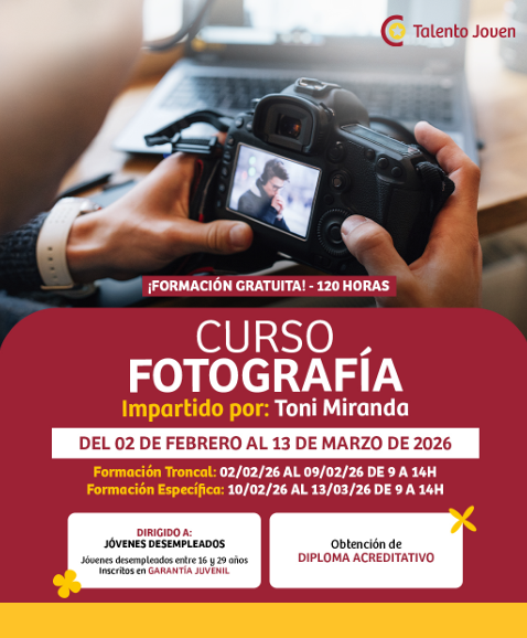 Módulos del curso de fotografía profesional y gestión de proyectos en el programa integral de cualificación y empleo.