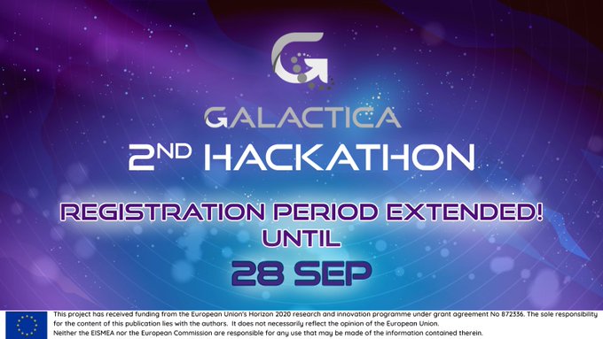 El segundo GALACTICA Hackathon se llevará a cabo en dos rondas, primero un desafío virtual sobre innovación abierta del 1 al 14 de octubre, y una segunda ronda para los finalistas seleccionados (hasta 10 equipos) el 30 de noviembre y el 1 de diciembre de 2021.