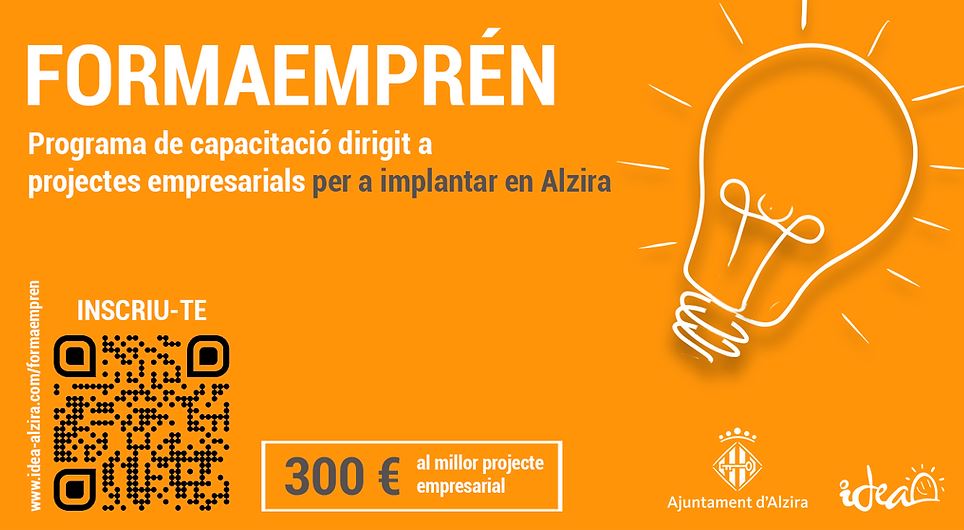 Además se premiará el MEJOR PROYECTO EMPRESARIAL con una Tarjeta de Alzira valorada en 300€, el cual será seleccionado en la última sesión, donde los participantes realizarán la presentación de su proyecto ante un comité de expertos.