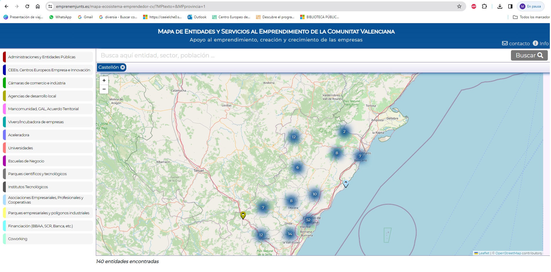 Castellón aumenta su participación en el Mapa de Emprendimiento de la Comunitat Valenciana con 140 Entidades