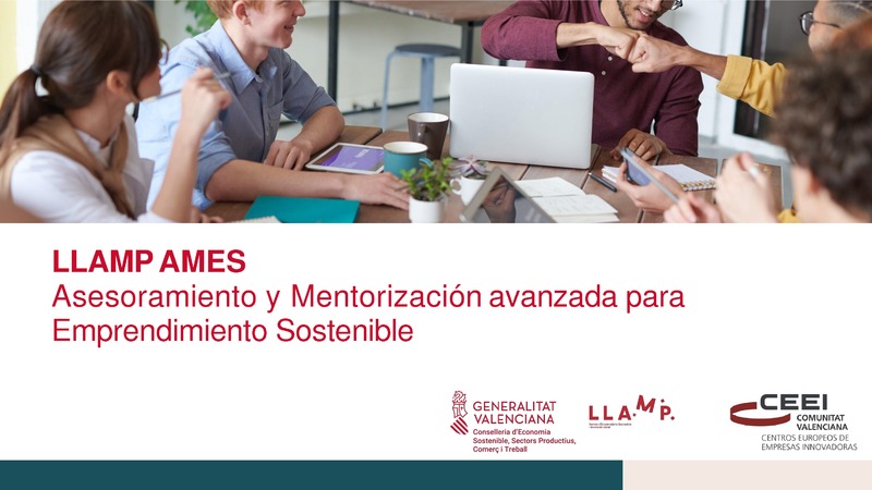 LLAMP AMES es un servicio subvencionado por la Dirección General de Emprendimiento y Cooperativismo de la Generalitat Valenciana, Conselleria de Economía Sostenible, Sectores Productivos, Comercio y Trabajo. Enmarcado en el “Programa Llamp C.V.” y siendo la finalidad de la línea “Fomento y desarrollo del programa de mentorización avanzada en emprendimiento sostenible (AMES).