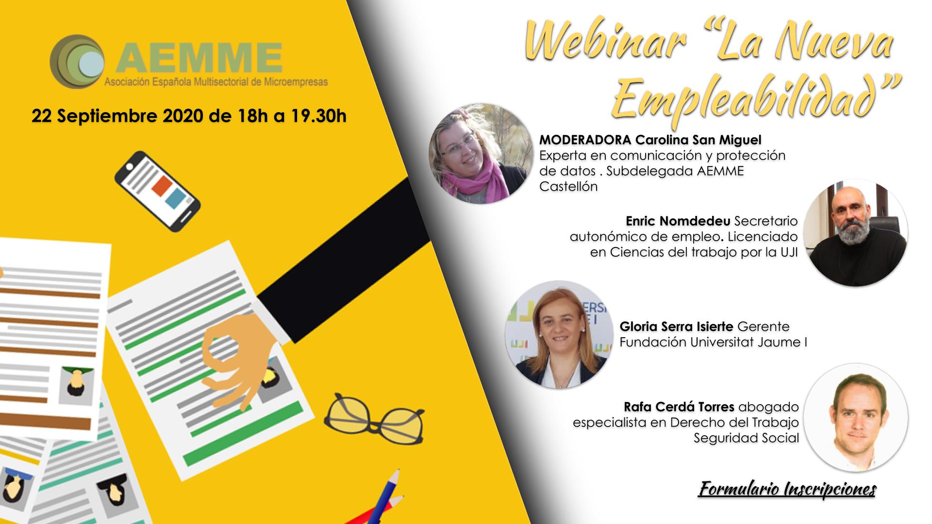 Este webinar organizado por AEMME contará con Rafa Cerdá abogado laboralista, Gloria Serra Gerente de la Fundación Universitat Empresa de la UJI y con Enric Nomdedeu Secretario Autonómico de empleo de la Comunidad Valenciana
