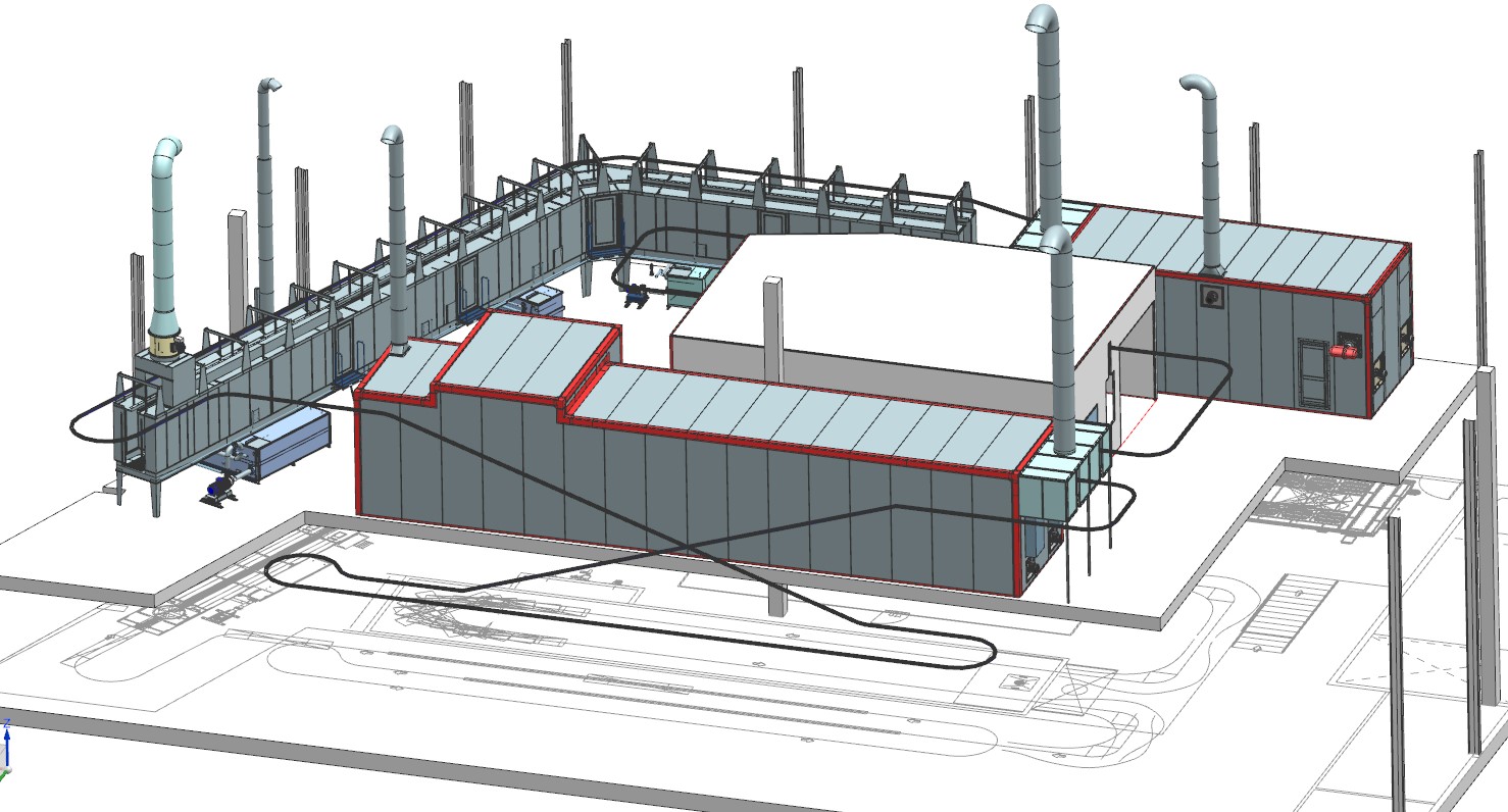 La línea diseñada por Cabycal estará compuesta de una zona de carga/descarga, un túnel de desengrase con 5 etapas, un horno de secado, una cabina de aplicación de pintura en polvo de última generación con cerramiento, un horno de polimerizado y transportador monorraíl. Está previsto que la instalación entre en funcionamiento a finales de 2019.
