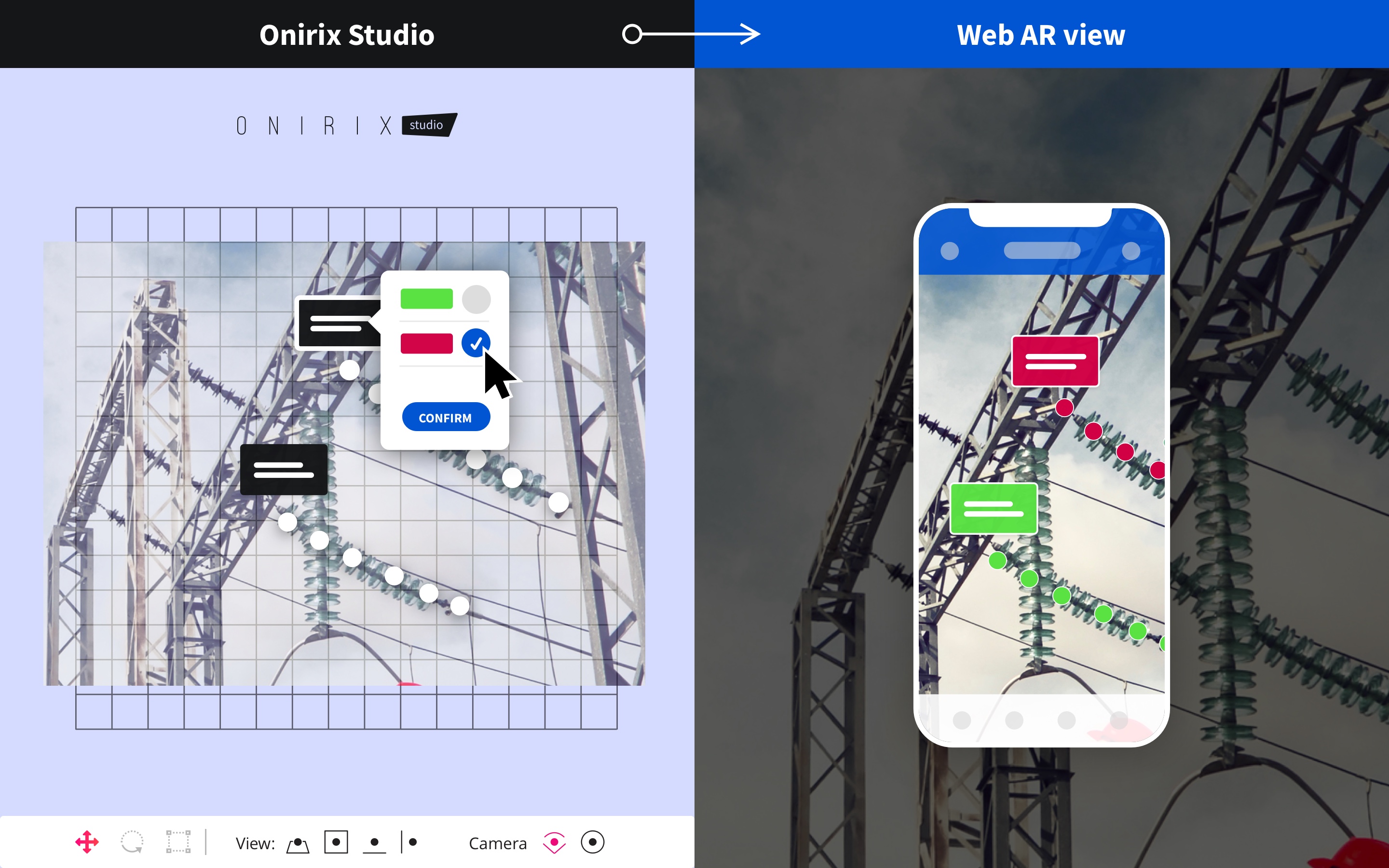 A través de su solución no-code, Onirix facilita crear y publicar cualquier tipo de contenido de realidad aumentada sin necesidad de escribir líneas de código. Además, consigue medir el impacto y la respuesta de su audiencia. Gracias a su tecnología y su interfaz intuitiva, el usuario tiene máxima autonomía para crear el contenido que desee, sin necesidad de preocuparse por cómo desarrollarlo.