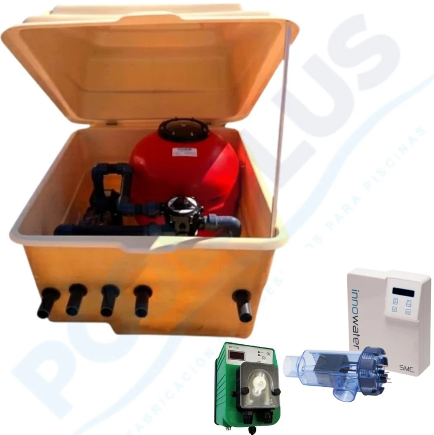 Si buscas un pack completo con el que comprar ya todo lo que necesitas para tu sistema de filtrado y que además incluya un clorador salino. ¡Estás en el sitio correcto! Además de contar con packs de casetas depuradoras con sistema de filtrado también tienes la opción de un pack completo de casetas enterradas con clorador salino para tu piscina. Despreocúpate de tener que comprarlo todo por separado y hazte con el pack completo.